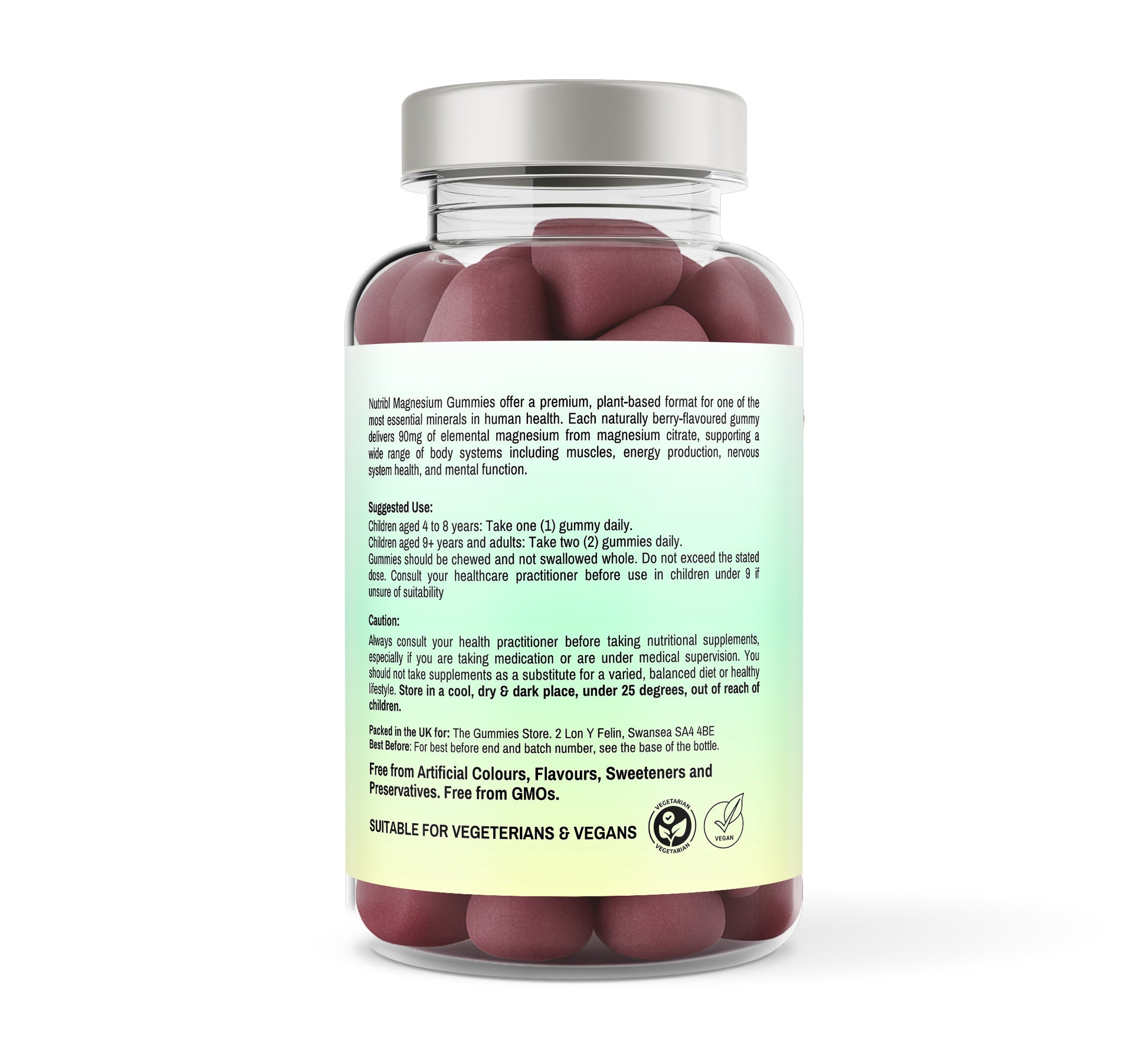 Each naturally berry-flavoured gummy delivers 90mg of elemental magnesium from magnesium citrate, a bioavailable form that supports muscle relaxation, energy release, and nervous system health.